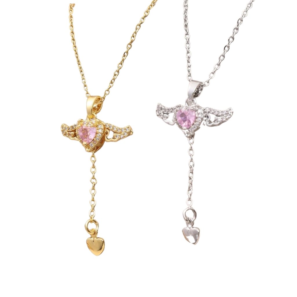 Moving Cupid Heart Angel Wings Tassel Necklace With Crystal Clavicle Chain Women Jewelry Gift Valentine’s Day