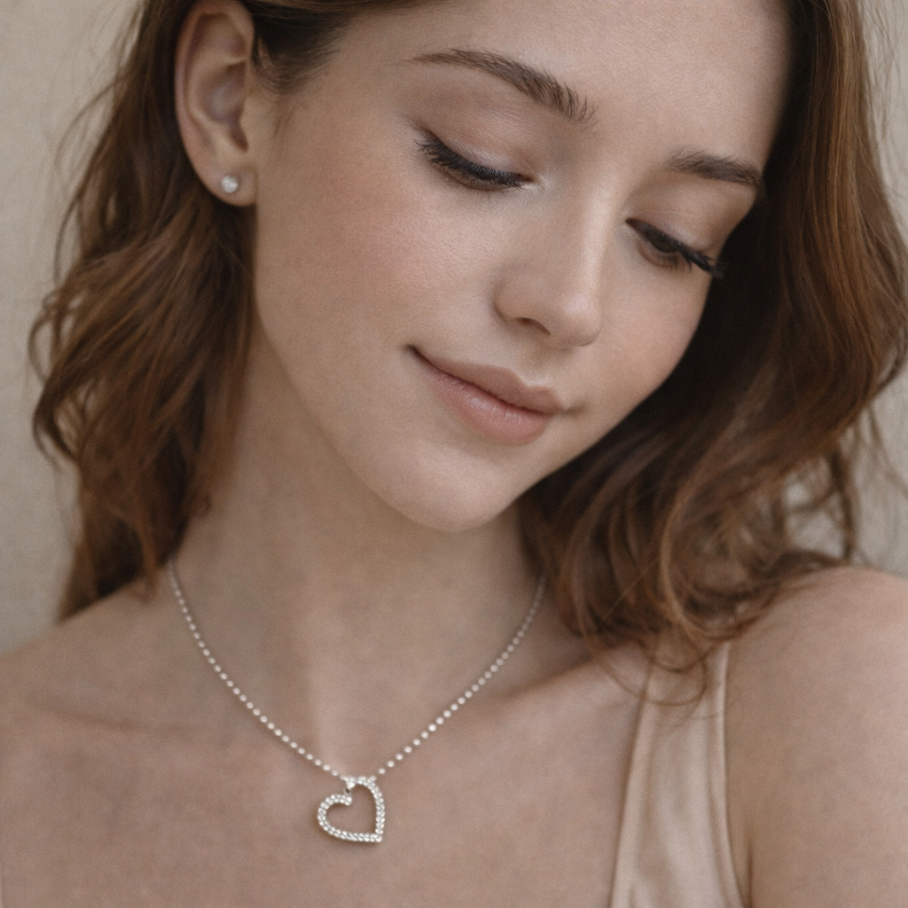 Delicate, romantic, and made to sparkle—Venus Silver Necklace is a timeless piece you’ll reach for every day. Featuring an elegant open-heart pendant lined with shimmering crystal accents, this necklace adds the perfect touch of shine without feeling too heavy. The sleek silver beaded chain gives it a modern finish, making it easy to wear solo or layer with other favorites.